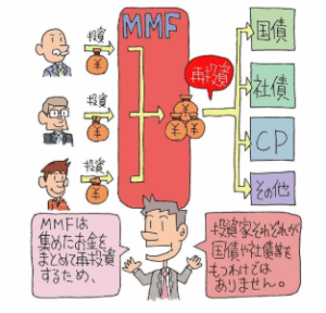 証券会社などを通じてMMFを購入すると、その資金がファンドに集まります。