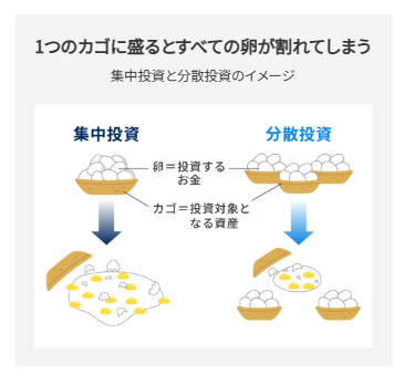 投資の世界には「卵を1つのカゴに盛るな」という有名な格言があります。(上記の画像)